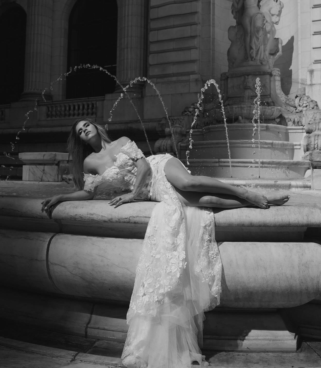 Ines by Ines Di Santo Floral Applique Long Sleeve Wedding Gown