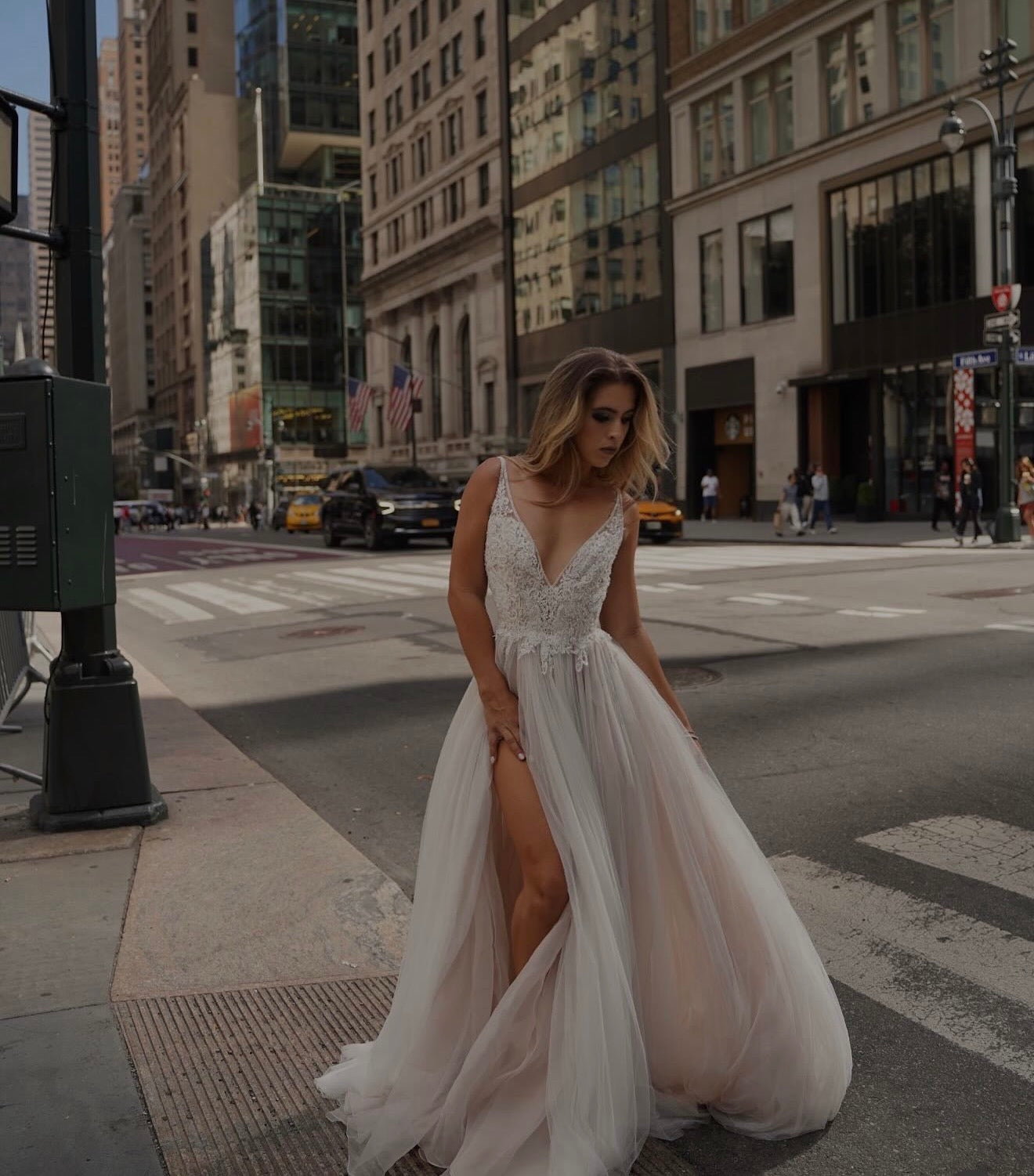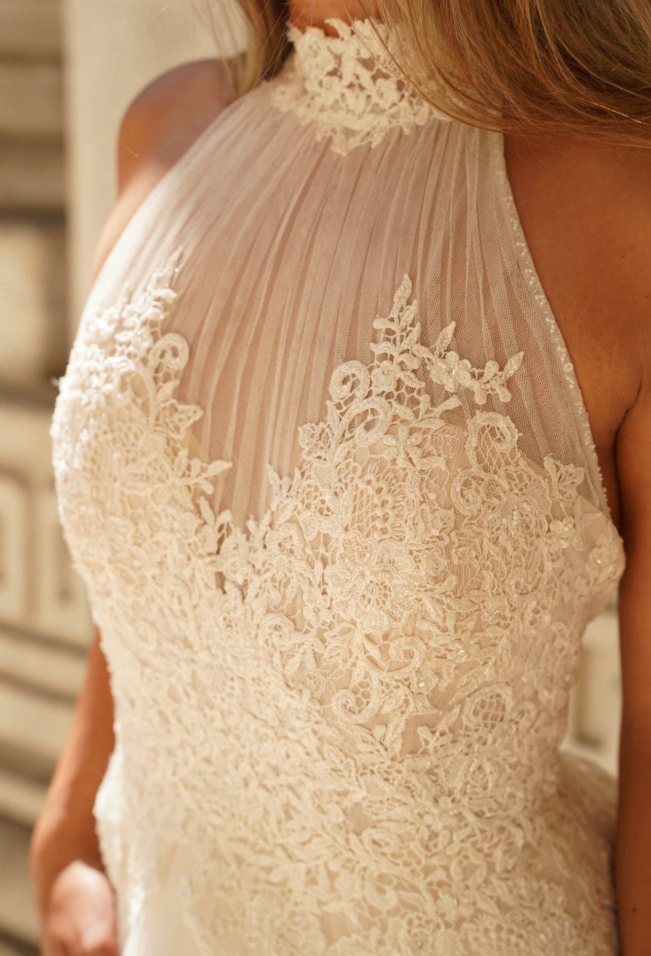 Donata by Rosa Clará Lace Beaded Tulle A-Line Wedding Dress Ivory