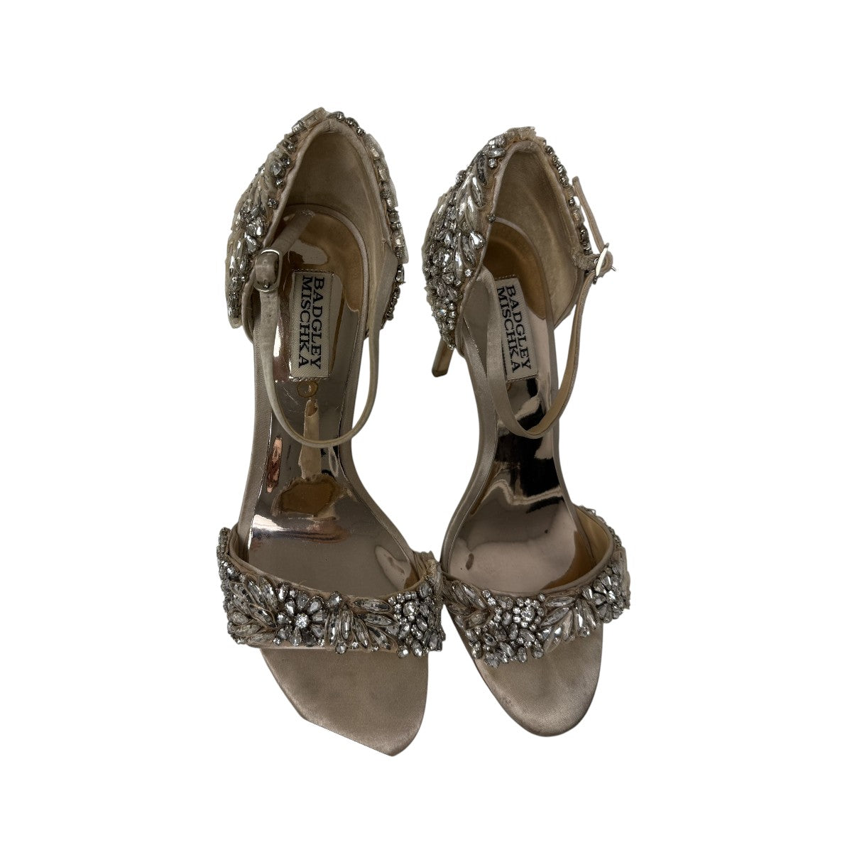 Badgley Mischka Beige Tampa Embellished Open Toe Evening Shoe Heels