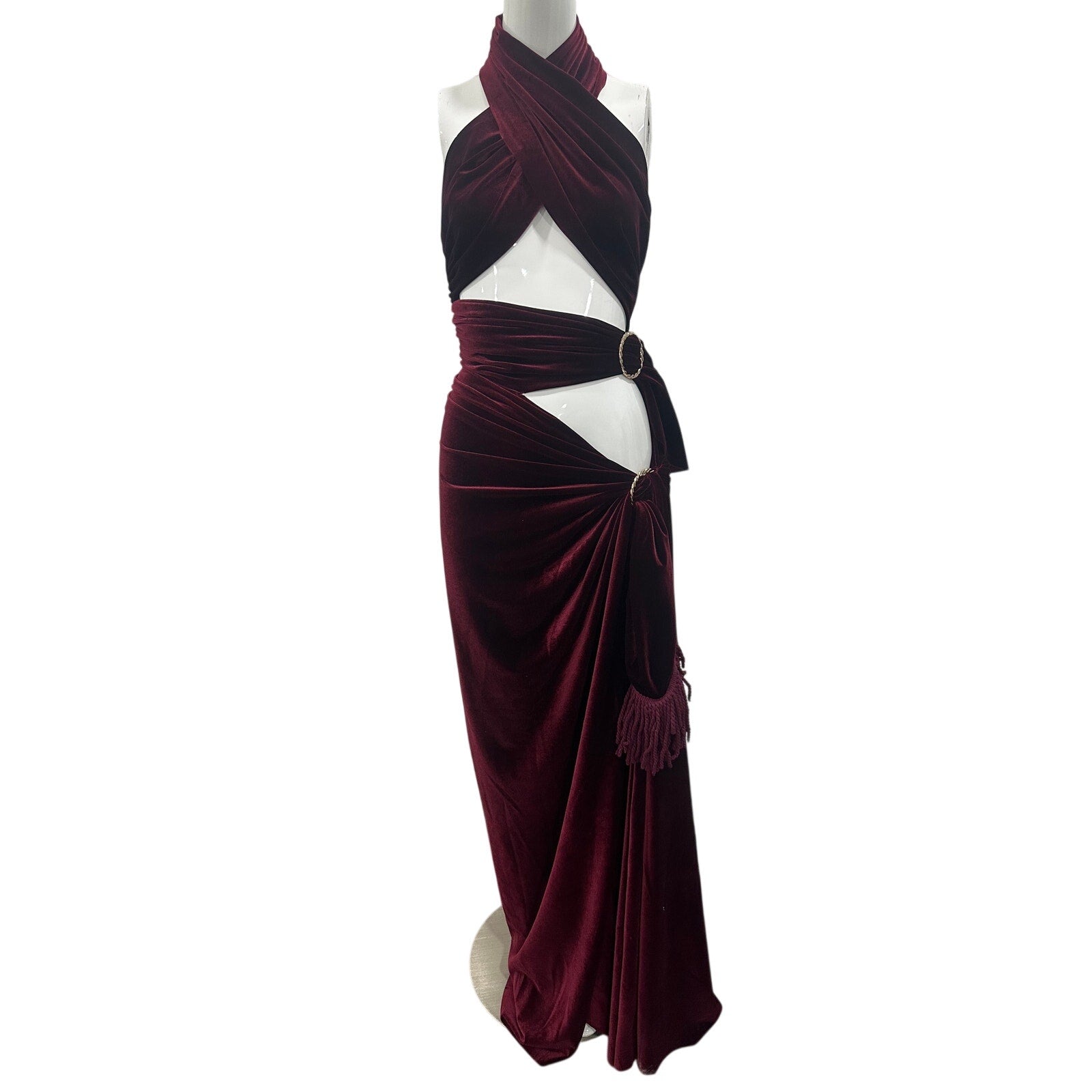 Bronx and Banco Velvet Cleopatra Wrap Maxi Dress Burgundy Women's Size 4