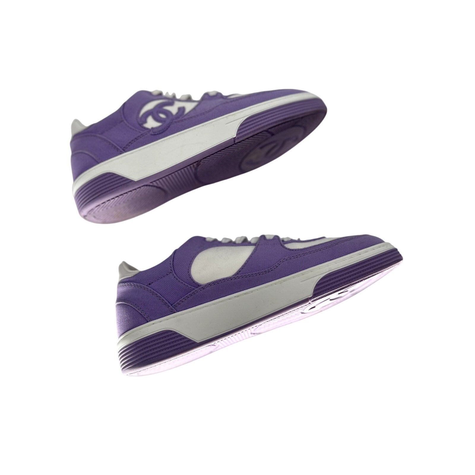 This Chanel Interlocking CC Logo Lace Up Sneakers combine sporty comfort with iconic luxury, featuring signature CC logo detailing and a sleek lace-up design. Crafted for everyday wear, they offer a polished yet casual finish to modern wardrobes.