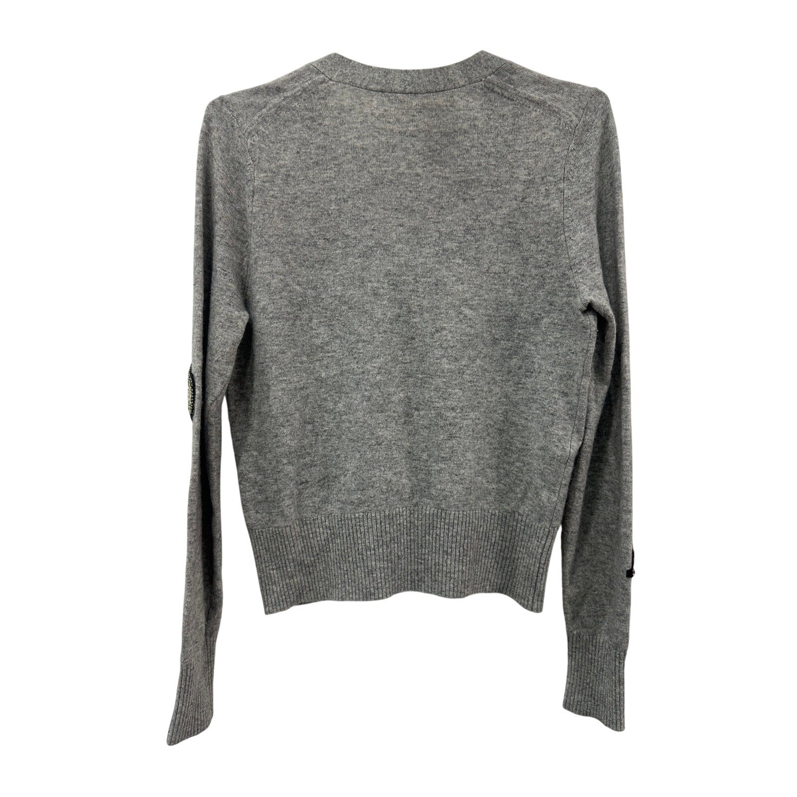 Cinq à Sept Wool V-Neck Graphic Embroidered Sweater Cardigan Gray Women's Size S