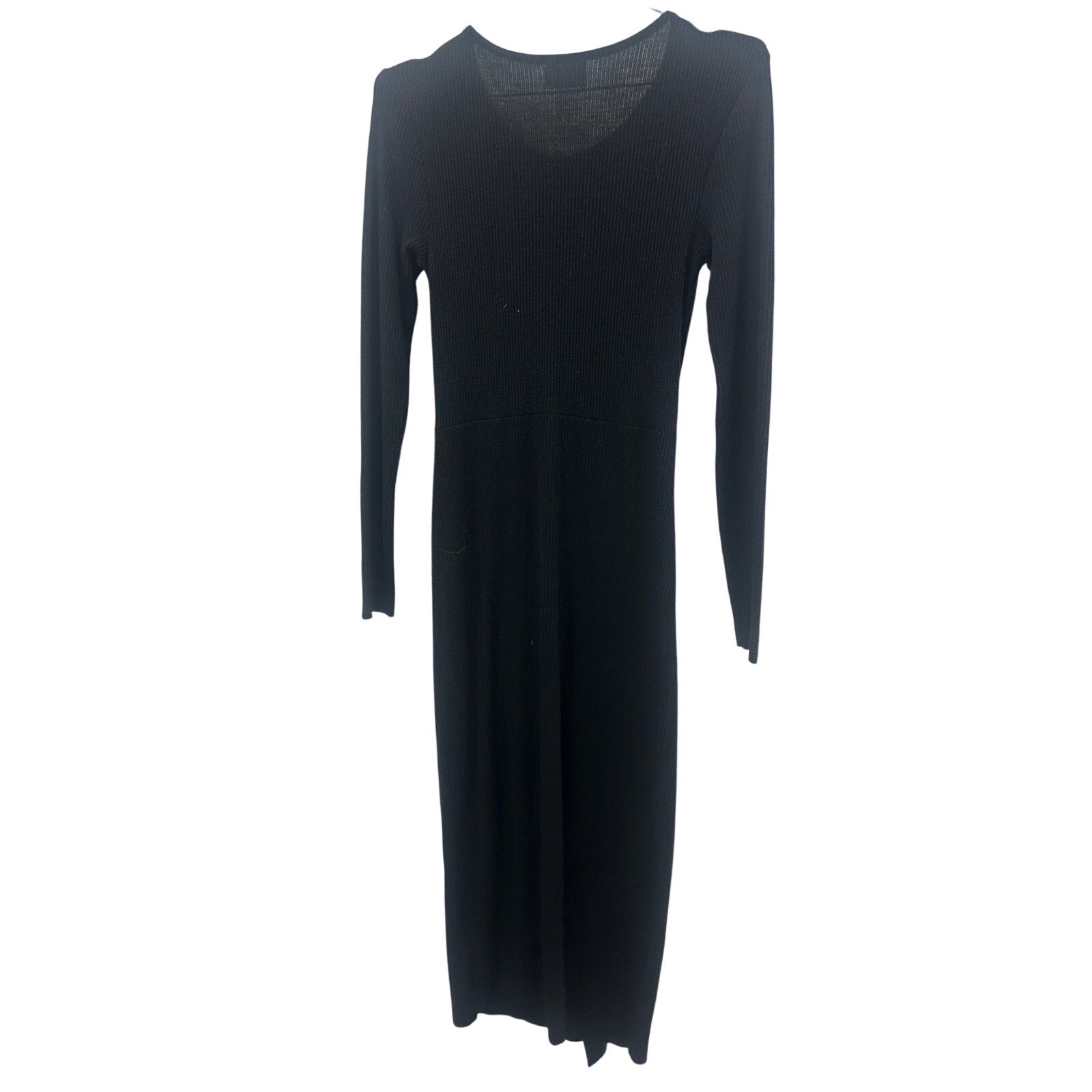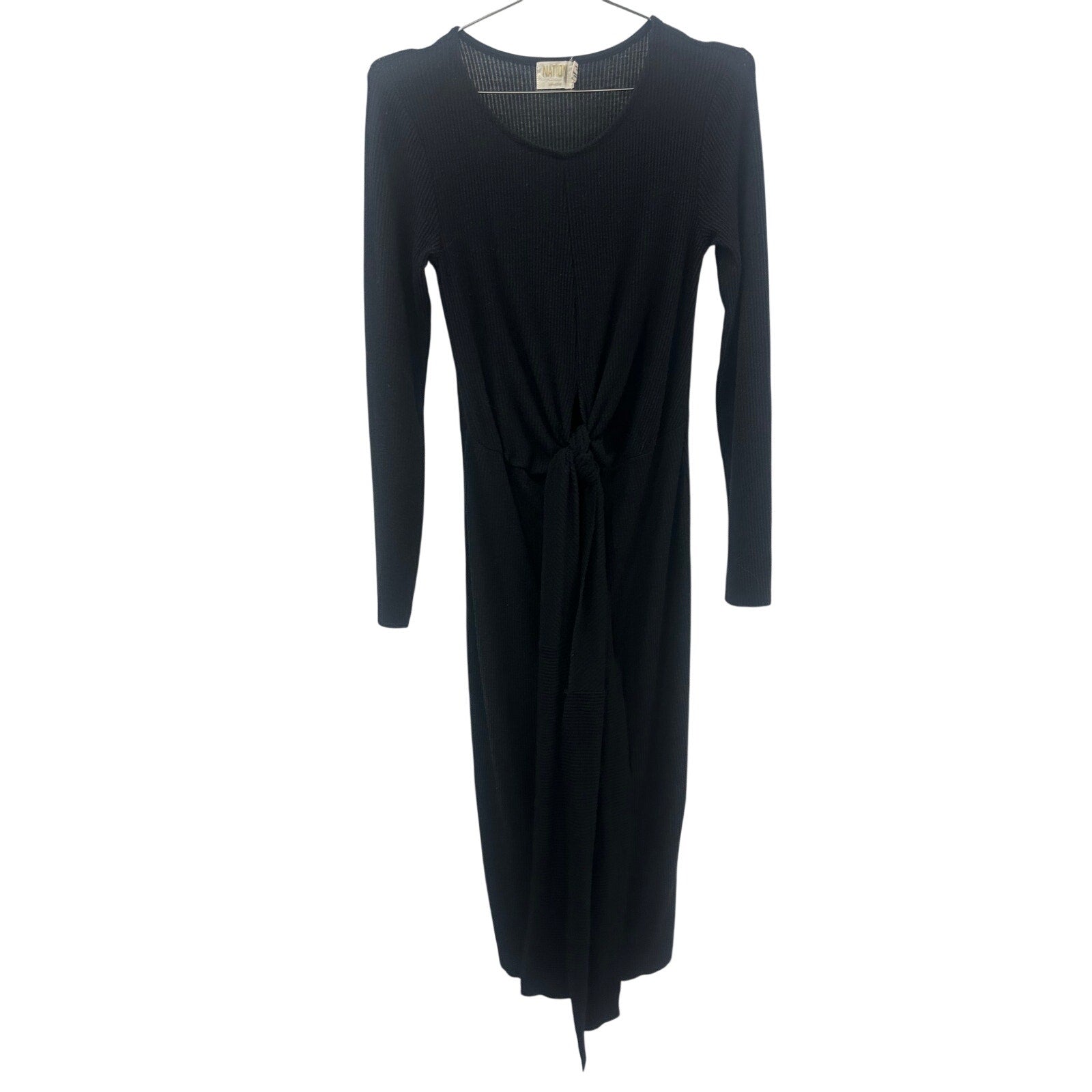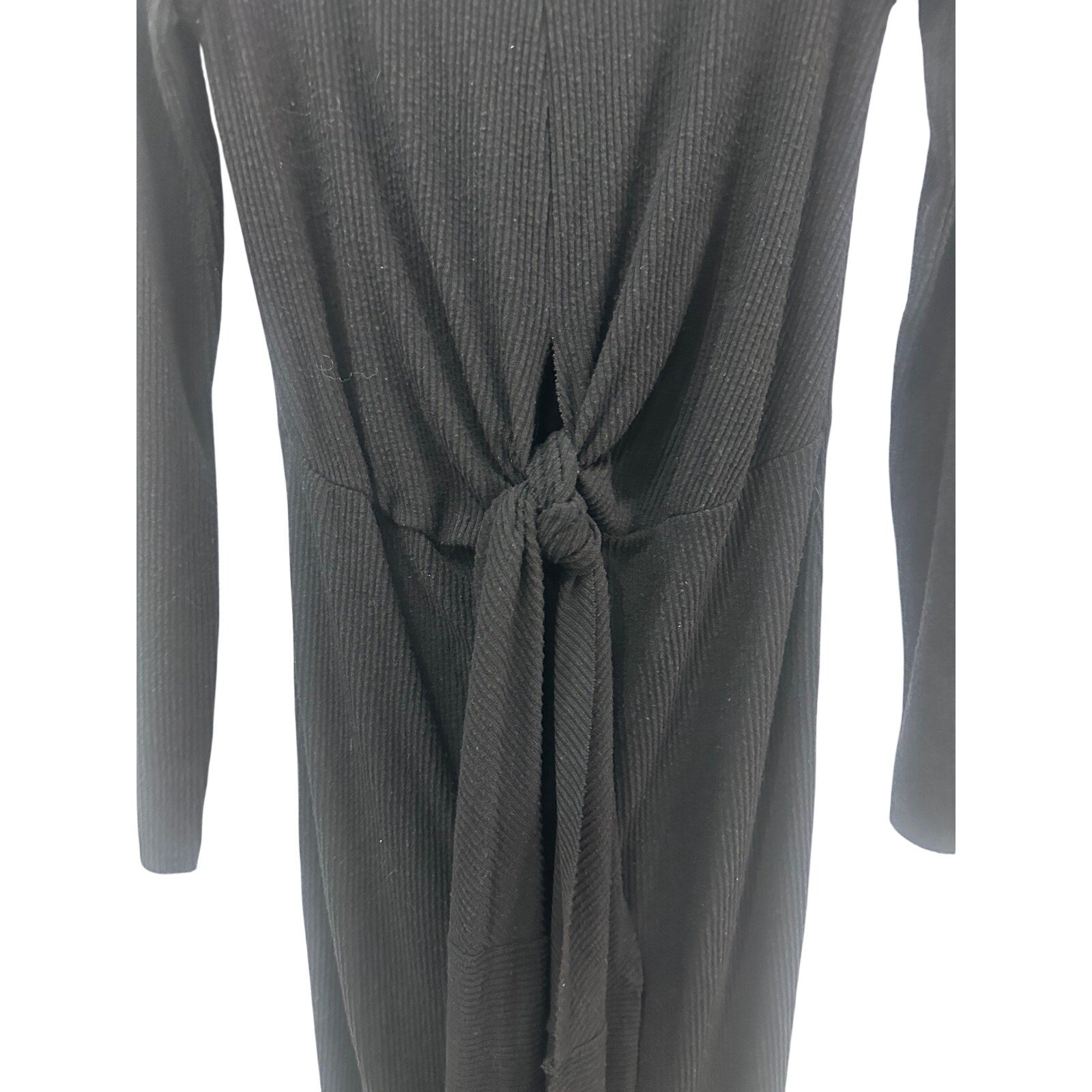Nation Ltd. Black Ribbed Front Knot Accent Long Sleeve Midi Dress Women's