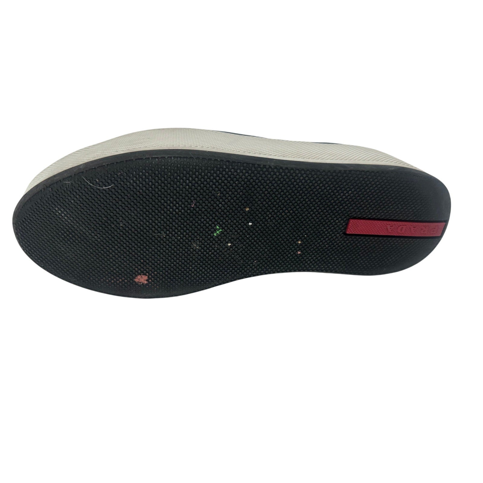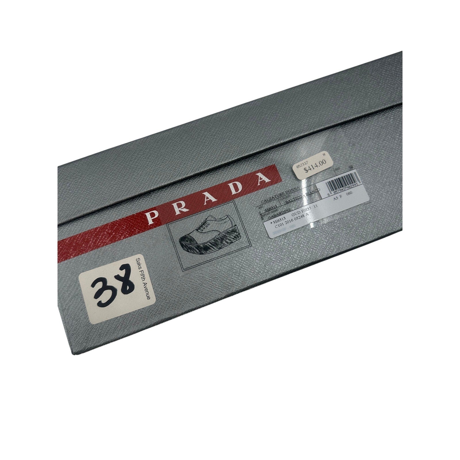 Prada Gabardine Calzature Donna Lace Up Platform Sneakers feature durable gabardine fabric paired with a bold platform sole for elevated, street-style appeal. Designed with sleek lace-up detailing, they deliver modern edge with signature Prada sophistication.