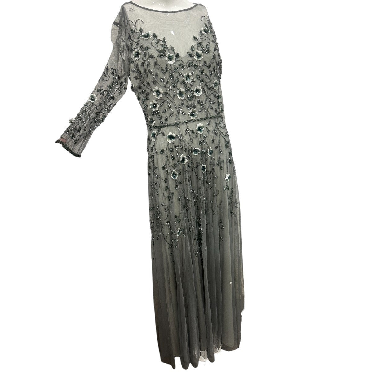 Theia Floral Applique Long Sleeve Maxi Dress showcases romantic floral appliqués with elegant long sleeves for a refined, feminine silhouette. Flowing to a full-length hem, it’s a timeless choice for formal events and special occasions.