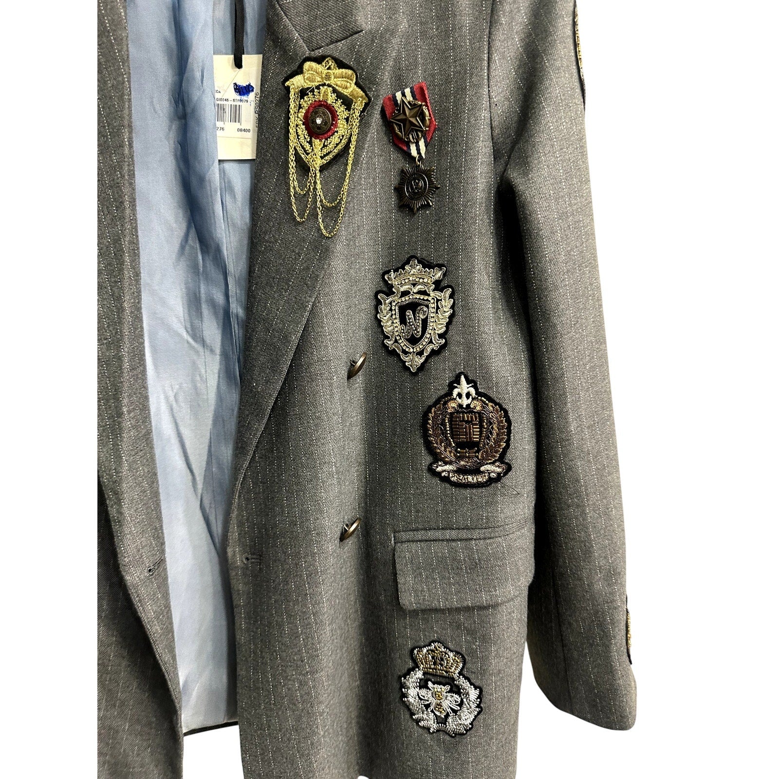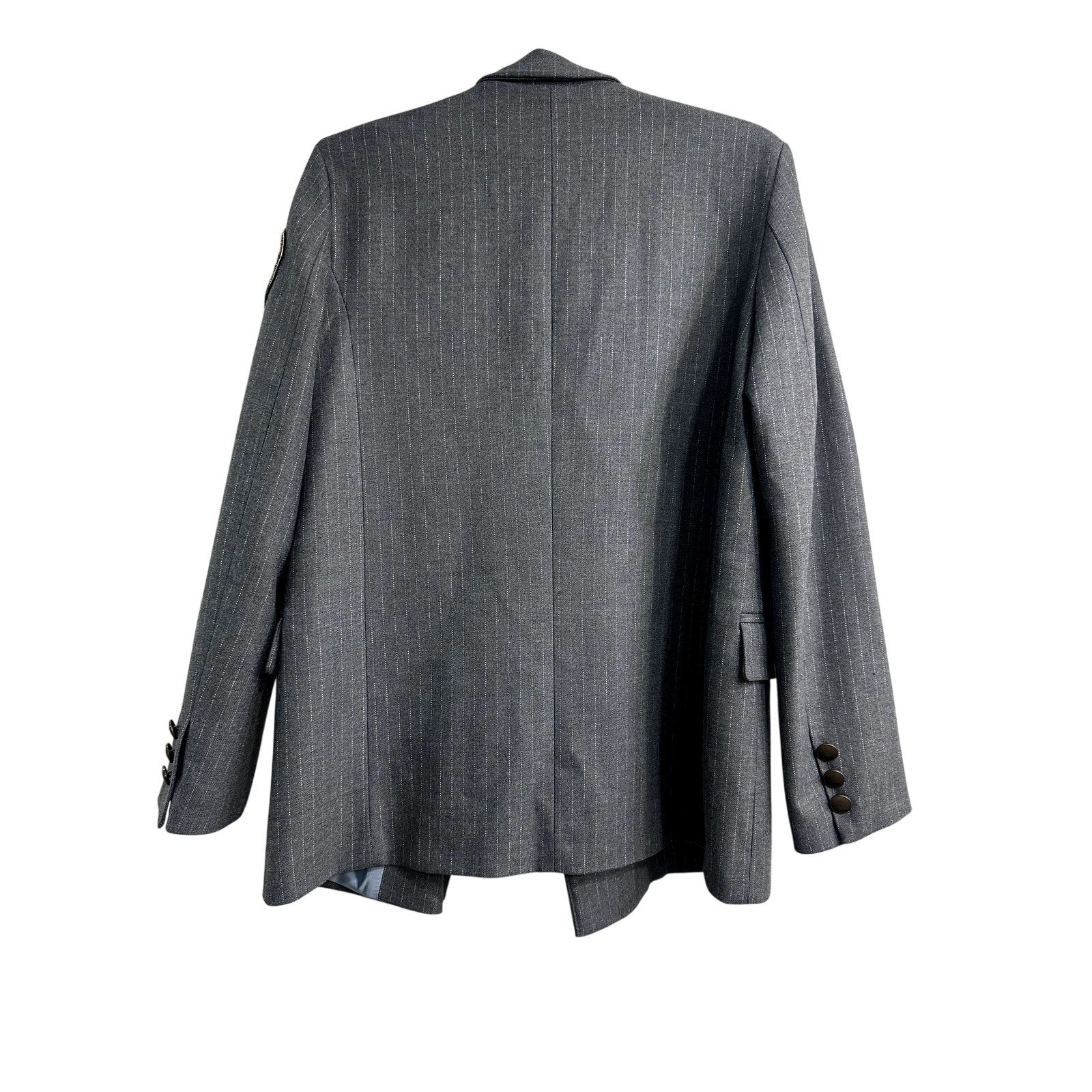 Vicolo Pinstripe Patch Accent Double Breasted Blazer Jacket